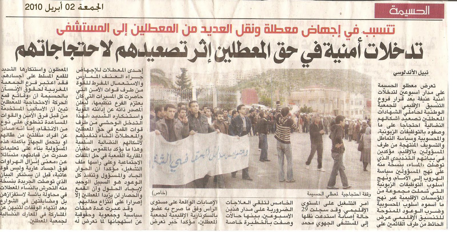 فتحية صادقة لكل المناضلات والمناضلين الغيورين على مسار اطارنا العتيد الجمعية الوطنية لحملة الشهادت المعطلين بالمغرب ولكل الهيآت المساندة النقابية والحقوقية والجمعوية ولكل الفروع المؤازرة .